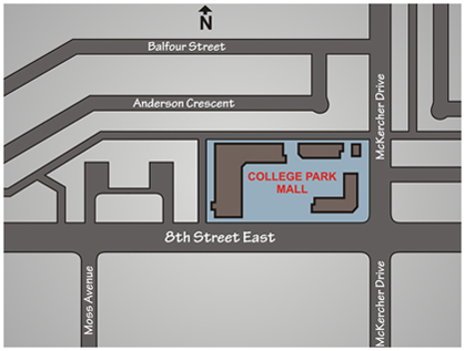 College Park Mall Location We are located at 3929 8th Street East in Saskatoon, Saskatchewan. College Park Mall features easy access off of both 8th Street East and McKercher Drive.